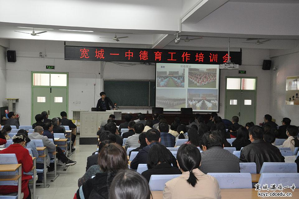 20201015日上午第三節課,寬城一中在高三階梯教室召開了全校德育管理工作會議,校領導班子成員,德育、教導成員,年級正副主任,全校正、副班主任,體育教師參加了此次會議。張克雷校長做了關于“學生管理軍事化”的專題講座。張校長從跑操、行走、食堂就餐、激情教育等四個方面,通過與其他學校的對比,展示了學生規范化管理的要點與精髓。在對比中找不足,在不足中學習改進,在改進中完成提升與超越。通過此次會議,全校德育管理人員深受啟發,能更深入,更精細地對學生進行規范化管理。教育局局長,寬城一中黨委書記王喜同志做了總結講話,王書記指出一中的軍事化管理不缺乏制度,關鍵在于強有力地執行,并希望全體德育人不忘初心,一如既往地進行學生管理。最后王進忠校長對近期德育工作做了總結,并指出了問題,提出了要求。至此此次活動圓滿成功。全體德育人,心有所得,行有所動,共同創造寬城一中的美好明天。
